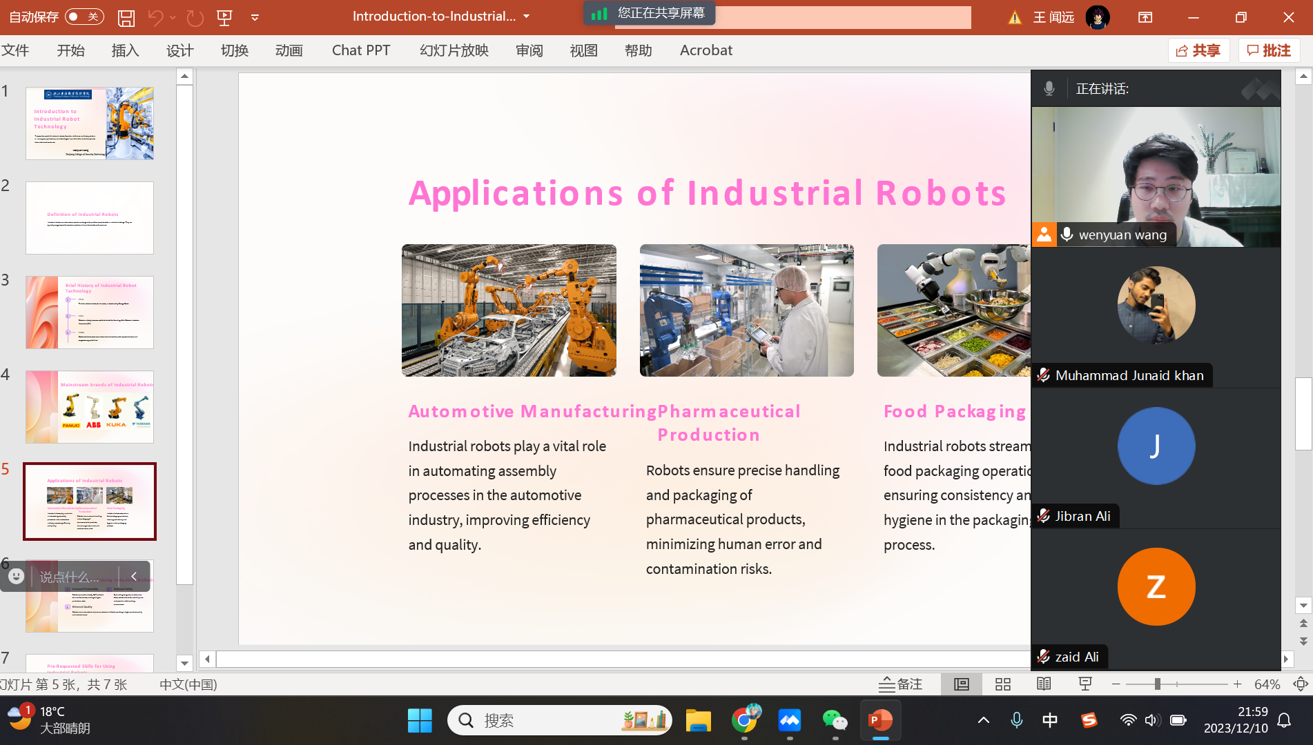 近日,新能源装备学院专任教师王闻远面向中巴丝路学院师生多次开展主题为“工业机器人技术导论”的线上培训。